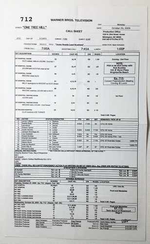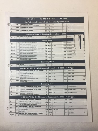One Tree Hill Set Used Shooting Schedule Season 7 Episode 15 Ebay